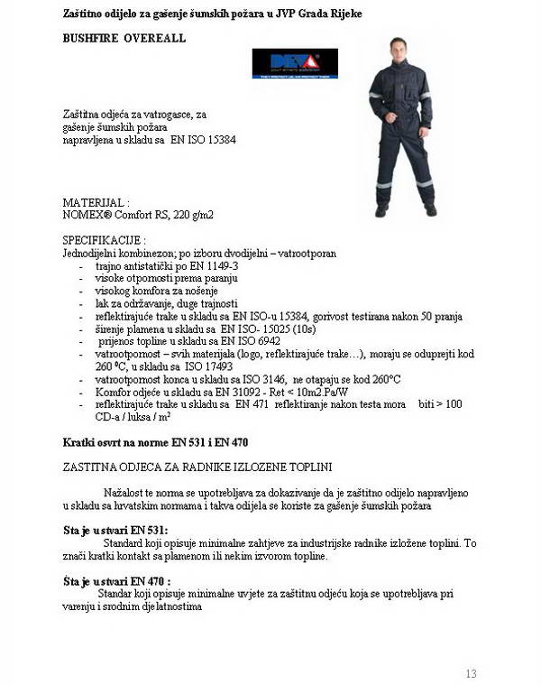 Mislim da je u baš u segmentu OZO za gašenje otvorenih prostora kod nas najlošija situacija. Npr. dođite kod trgovca i tražite vatrogasni kombinezon i dobit ćete obični gore spomenuti. Ako baš davite i kažete da imate para i da trebate nomexov, za gašenje šumskih požara, dobit ćete ovaj po normi EN 531. Takvih kod nas ima dosta i još uvijek se nabavljaju kao oprema za gašenje šumskih požara. EN ISO 15384 koji su prilagođeni vatrogascima istandard vani, kod su još ipak rijetkost. Iako da se razumijemo i nomexov EN 531 je veliki napredak u odnosu na radne hlače i košulju ili pamuk/sintetika vatrogasni kombinezon.
