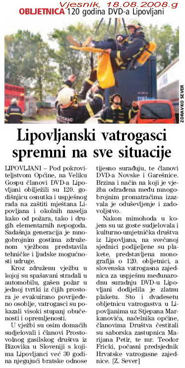 Održana proslava 120 godina DVD-a LIPOVLJANI
