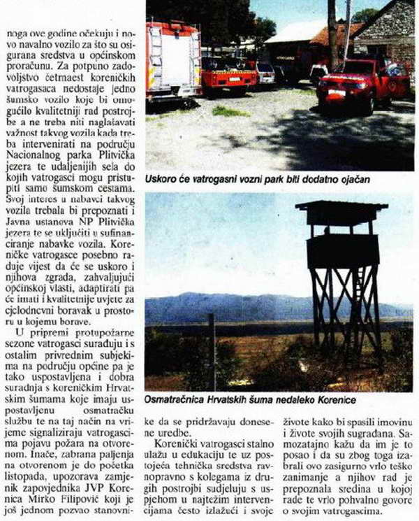 Članak o Javnoj vatrogasnoj postrojbi Korenica