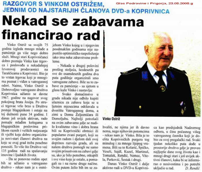 VINKO OSTRIŽ, jedan od najstarijih u DVD-u Koprivnica