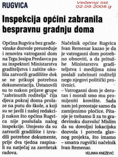 RUGVICA: Inspekcija zabranila obnovu Vatrogasnog doma
