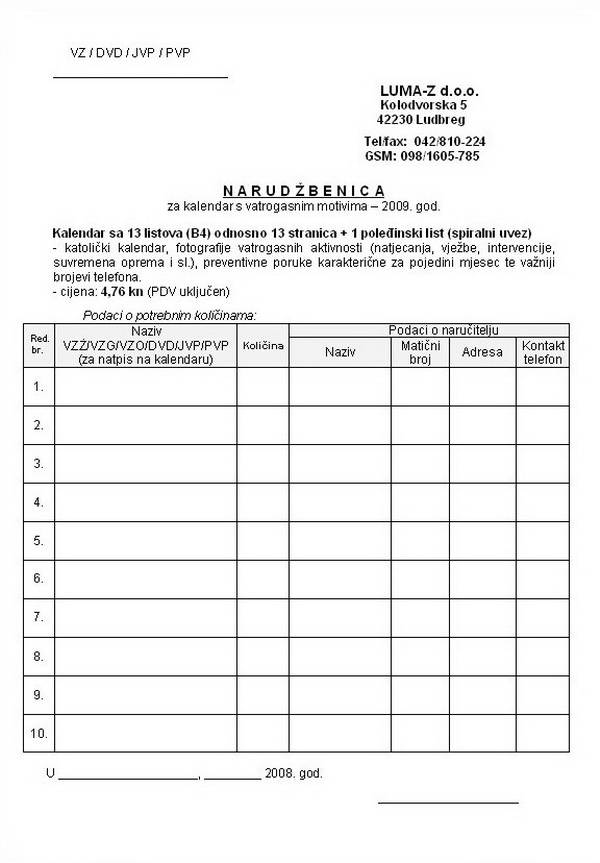 Ukoliko ste zainteresirani za nabavu ovog kalendara, molimo Vas da svoje narudžbe na priloženom obrascu dostavite direktno izrađivaču (kontakt-podaci za slanje narudžbe nalaze se na obrascu)