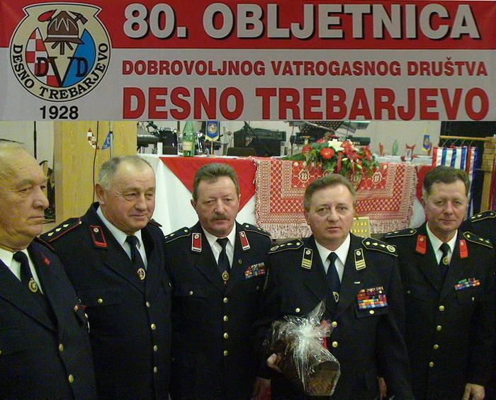Proslavi 80. rođendana DVD-a Desno Trebarjevo bili su nazočni i predstavnici bratskih društava iz Njemačke, Austrije, Slovenije, ali i iz cijele Hrvatske. Tom je prigodom Zlatna plamenica HVZ-a uručena Miljenku Miklišu i Gerhardu Laiju. Brončane plamenice predane su Arminu Sch-Proslava obljetniceweizeru, Stefanie Schweizer, Martinu Stiegleru i Thomasu Zinku. Zlatne medalje dobili su povodom 80. obljetnice društva Ivan Brlečić, Josip Cvetković i Pranz Strnad. Bronèane medalje dobili su Helmut Kanzinger, Hubert Maurer i Lhotar Schweizer.