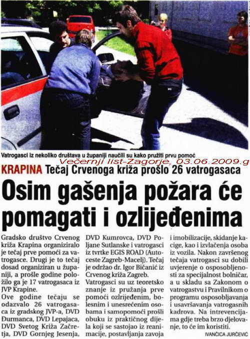 Gradsko društvo Crvenog križa Krapina organiziralo je tečaj prve pomoći za vatrogasce. Drugi je to tečaj dosad organiziran u županiji, a prošle godine položilo ga je 17 vatrogasaca iz JVP Krapine.