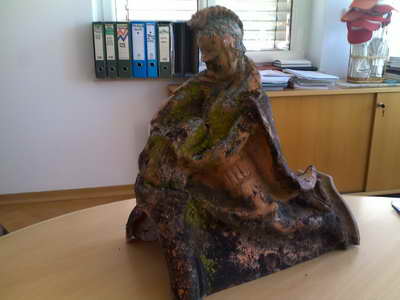 Crijep za vatrogasnim zaštitnikom, otkrio je na krovu predsjednik Vatrogasne zajednice Krapinsko zagorske županije Ivica Glas. Skinut je za vikenda s puno opreza, da se ne ošteti, uz pomoć dizalice HEP-a s krova vatrogasnog doma u Lučelnici.