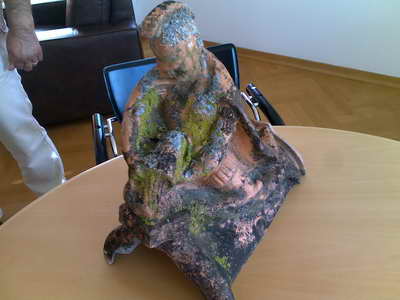 Direktor Mladen Koprek zahvalio se i rekao da su ga prošli trnci kad je vidio ovako star, a dobro očuvan crijep s likom Svetog Florijana, kojeg štuje kao vatrogasac. Pokazati će ga