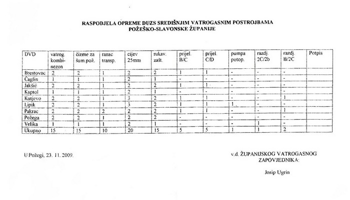 ovo gore ne vrijedi ni 100 000,a rečeno je da oprema vrijedi 400 000 kuna.Ko tu koga laže i zašo na spisku nema Pleternice.Da vam kažem zašto,kad na spisku bude Pleternica onda će i oprema vrijediti 400 000.A sad sami zaključite ko tu koga i kome je ko mater a ko maćeha.