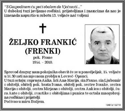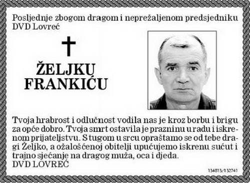 bio je veliki covijek,cijeli zivot je podredio vatrogastvu bilo mi ga je jako ugodno sresti i nasaliti se sa njime,,,,neshvatljivo je da tu osobu necu susretati,,,frenki neka ti je laka hrvatska zemlja koju si volio