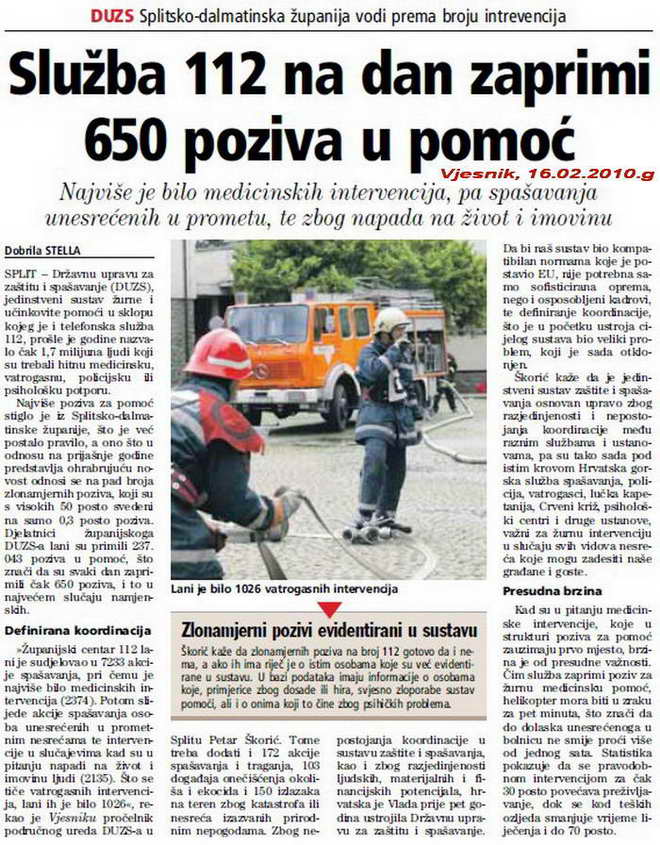 Gospodin Škorić obmanjuje javnost sa svojim izjavama i pošteno bi bilo da reče prespojili smo toliko i toliko poziva raznim služama a ne žc 112 sudjelovao u toliko akcija.Čini mi se da da ih nisam nigdje vidio?Također laže da su sve žurne službe sada pod istim krovom,zbilja je previše pa makar i od njega a znamo da voli isticanje.Zar zbilja sve oni rade?