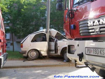 Teške ozljede zadobio je 19-godišnji vozač bijelog "golfa" šibenskih registarskih oznaka ŠI 472-U koji je, izgubivši nadzor nad vozilom, sletio sa ceste u Ulici Županije Somogy u Novom naselju u Poreču, neposredno nakon raskrsnice sa ulicom B. Valentija.