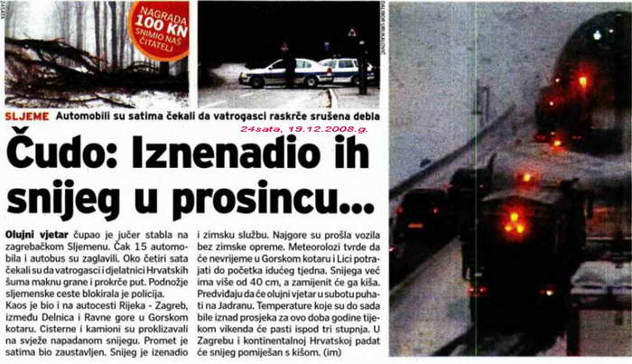Dva srušena stabla blokrala su cestu negdje između šestog i sedmog kilometra od skretanja prema Sljemenu.
