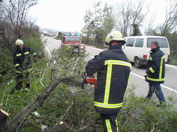 Od 20:15 sati, kada je dobivena prva dojava o srušenom stablu na državnoj cesti D-8 na izlazu iz Novog Vinodolskog, zaredalo je 5 intervencija.