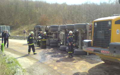 Dana 06.04.2009. u 12:33 sati dogodila se prometna nesreća,prevrtanje teretnog vozila sa 25 tona šljunka na obilaznoj cesti kod kamenoloma u Velikoj.
