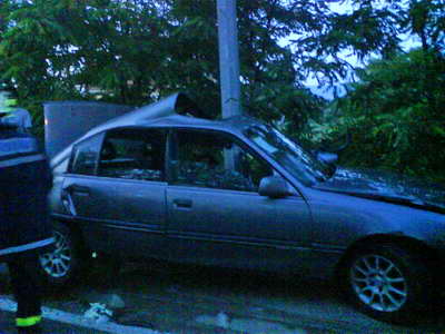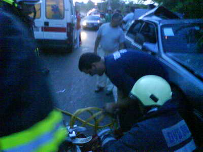 Na intervenciju je odmah izašlo navalno-tehničko vozilo Mercedes Atego, sa 6 vatrogasaca. Po dolasku na mjesto intervencije, uočeno je da se radi o automobilu marke Opel, starije proizvodnje, koji je izletio iz svadbene povorke i lijevom bočnom stranom udario u rasvjetni stup, pri čemu je troje suputnika iz vozila zadobilo tjelesne ozlijede, od kojih dvoje teže, te su ostali prikliješteni u vozilu, pa su ih vatrogasci morali izvlačiti pomoću hidrauličnog alata.