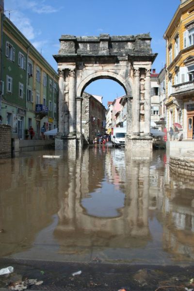 Jako nevrijeme je u utorak pogodilo Pulu. U samo dva sata je palo više od 50 litara kiše po četvornome metru. Prilazne ceste i križanje s obilaznicom nalikuju na jezera, a voda je na neke prometnice nanijela zemlju i kamenje. Središte Pule je pod vodom, kao i riva. Mnogi automobili ostali su zarobljeni u bujici vode. Kiša je prestala padati oko 11 sati, a vatrogasci saniraju štetu. Trenutačno ispumpavaju prostore na pet ili šest mjesta u središtu grada. Njima pomažu i djelatnici komunalne tvrke Herculanea.