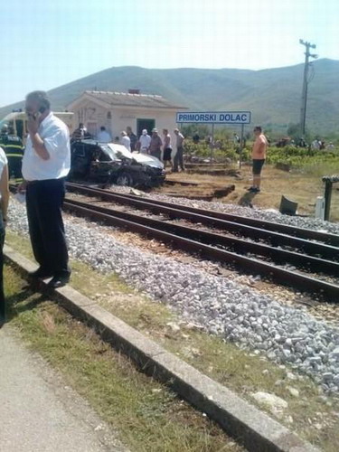 Nagibni vlak je u utorak oko 11.30 sati na obilježenom, ali neograđenom pružnom prijelazu u mjestu Primorski Dolac kod Kaštela naletio na Ford Escort. U Fordu su bili D.Ž. (64) i A.Ž. Supružnici su teško ozlijeđeni, ali im život nije u opasnosti. Ford je uništen i vatrogasci DVD-a "Kaštela" (8 vatrogasaca) i DVD-a "Mladost" (3 vatrogasca)(četiri vatrogasna vozila) su morali rezati lim kako bi izvukli unesrećene. Prvi je do unesrećenih stigao Mate Stojak (62).