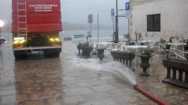 Odmah su od ranih jutarnjih sati priskočili u pomoć vatrogasci i komunalci. Pumpalo se more na sve strane, ali što vrijedi kada se, pošto je ispumpano, u konobe opet vraćalo.