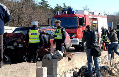 Talijan G.D.O. (63) poginuo je, a M.C. (37) iz Crikvenice teško je ozlijeđen u sudaru u 11.30 sati na magistrali iznad Jadranova blizu Crikvenice. Talijan je svojom Opel Fronterom na punoj liniji prestizao treći automobil i izravno se sudario s HAK-ovim vozilom za vuču koje mu je dolazilo u susret.