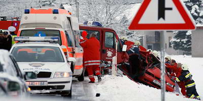 Teška nesreća u sudaru automobila i slovenskog vatrogasnog kombija