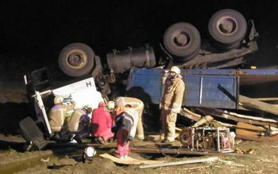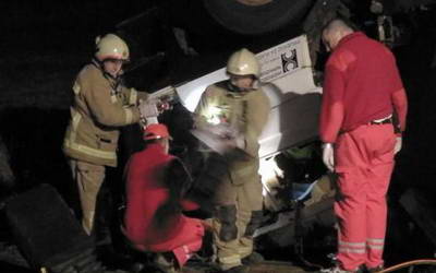 Vatrogasci su morali rezati lim kako bi došli do nesretnog vozača prevrnutog kamiona. Bio je zarobljen u potpuno smrskanoj kabini. Spasitelji su ubrzo shvatili da vozaču nema pomoći. Već je bio mrtav.
