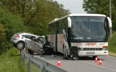 Požega: U busu je bilo oko 60 djece koja su išla u školu. Nitko nije ozlijeđen. Pretpostavlja se da je vozaču auta pozlilo i izgubio je nadzor nad autom