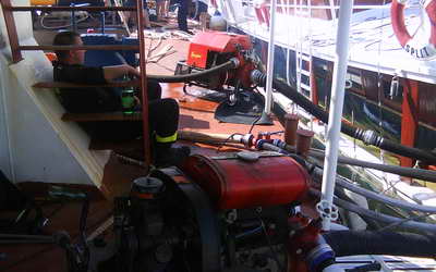 Dana 04.07.2010.u 08:18 sati dežurni vatrogasac DVD-a Dalmacija dobio je dojavu preko centra 112 od vlasnika da u brod "Plomin" koji je privezan u lučici Sumpetar prodire veća količina mora te da bi trebalo odmah pristupiti ispumpavanju i spašavanju broda. U 08:21 izlazi navalno vozilo sa 3 vatrogasca. Dolaskom na mjesto intervencije odmah podižu dodatne snage DVD-a Dalmacija i vozilo sa opremom za ispumpavanje.