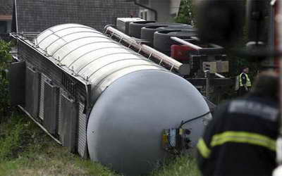 Istjecanje goriva iz prevrnute cisterne.