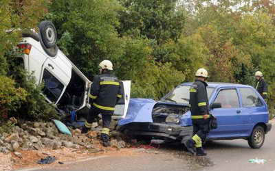 Zbog velike brzine, te kišom izazvene smanjene vidljivosti i skliskog kolnika na ulazu u Bilice Stubalj kraj Šibenika u četvrtak oko 16 sati sudarili su se Volfswagen Golf i Kia Prida.