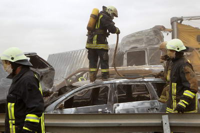 U stravičnoj prometnoj nesreći na njemačkoj autocesti kraj Rostocka sudarila su se ukupno 43 vozila u petak popodne. Poginulo je deset, a ozlijeđeno je 97 ljudi. S jedne strane autoceste sa četiri trake sudarilo se i zapalilo 17 automobila i tri kamiona, uključujući i cisterna koja je prevozila opasnu tekućinu. Dio se i izlio.