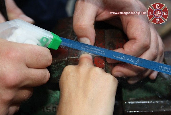 ''Imamo aparatić za takve intervencije, ali je prsten bio pretvrd. Primijenili smo onda 'bapsku' tehniku, namotali smo konac oko njega, a kad ni to nije dalo rezultata, stavili smo prst u škrip i uzeli pilu, drugog izbora nije bilo'', opisuje vatrogasac Alen Bačić. Sonji je društvo pravila i trogodišnja kći, koju su vatrogasci zabavljali.