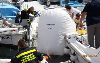 Vrši se kontrola podmorja te se kontrolira istjecanje goriva. Pošto je utvrđeno da nema istjecanja goriva nastavljamo sa akcijom podizanja glisera. Vatrogasac u vatrogasnom gliseru , zajedno sa djelatnicima lučke uprave , razmješta susjedna plovila tako da dobijemo mjesta za okrenuti gliser . Gliser je na morskom dnu ležao tako da je kobilicom bio okrenut prema površini. Nakon što je plovilo preokrenuto , postavljamo dodatne padobrane te ga podižemo na površinu .