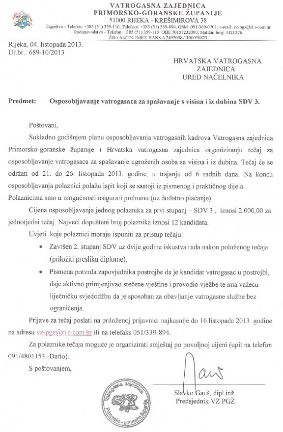 Tečaj za spašavanje IVID-raspis